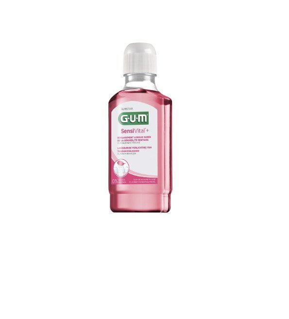 Gum SensiVital plus Bain de bouche 300ml de GUM, soin apaisant pour dents sensibles, rinçage sans alcool pour une haleine fraîche et gencives protégées au quotidien.
