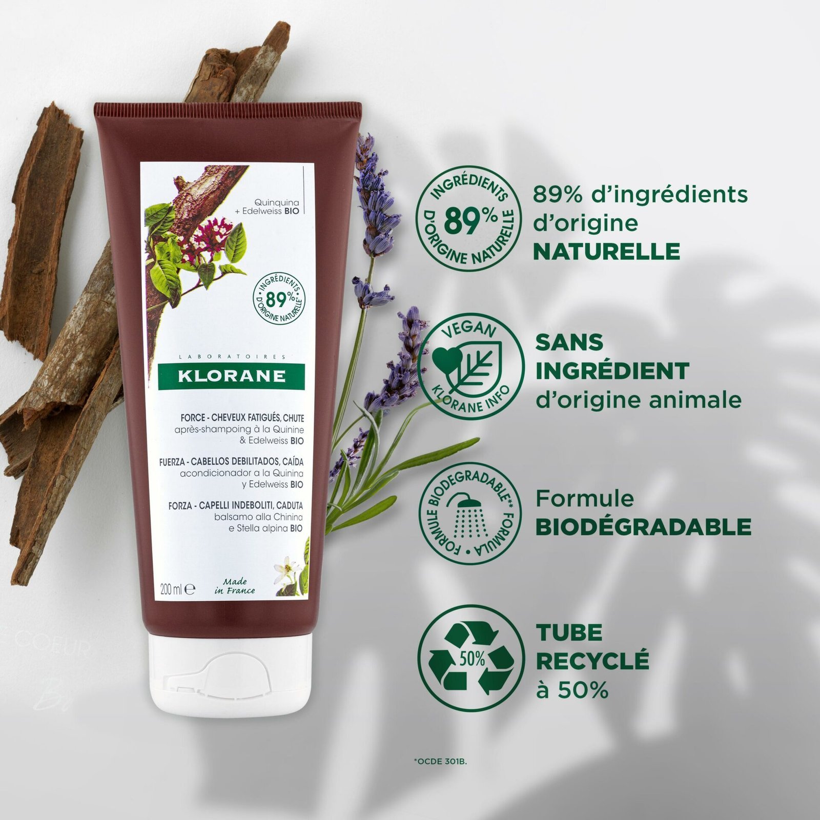 Klorane – Après-shampoing à la Quinine & Edelweiss BIO – Chute de cheveux, cheveux fatigués