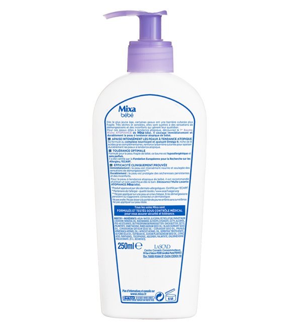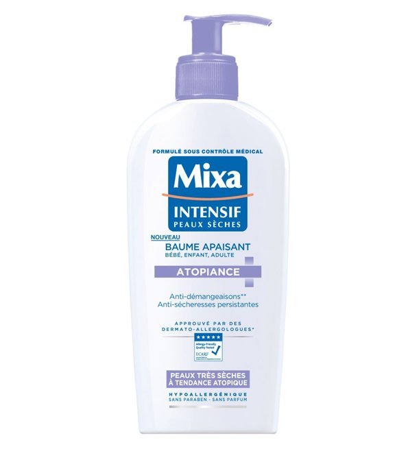 Dès le plus jeune âge, certaines peaux ont une barrière cutanée plus fragile. Très sèches et sensibles, elles sont sujettes à des sensations de démangeaisons et des inconforts qui gênent leur quotidien.Pour ces peaux dites à tendance atopique, découvrez le 1er Baume Apaisant ATOPIANCE de Mixa. Il soulage immédiatement et durablement les peaux à tendance atopique des bébés, des enfants et des adultes.Apaise intensément les peaux à tendance atopiqueSa formule au complexe nourrissant et apaisant Oméga-8, riche de 8 acides gras complémentaires, renforce la barrière cutanée pour apaiser durablement les peaux à tendance atopique.Tolérance optimaleFormulé pour les bébés, les enfants et les adultes, ce baume est hypoallergénique. Il a été certifié par la Fondation Européenne pour la Recherche sur les Allergies, l’ECARF.