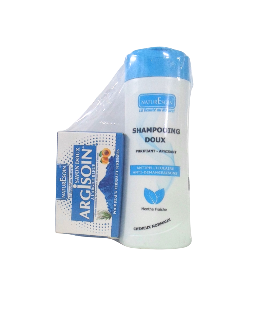 Profitez du pack NatureSoin Shamp Purifiant 250ml + Savon Argile Noir 125g : shampoing purifiant et soin naturel pour cheveux sains, doux et équilibrés.