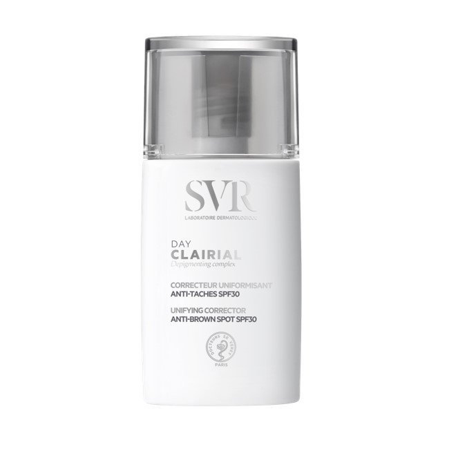 SVR Clairial day dépigmentant SPF30 30ml : crème solaire visage teintée qui hydrate, protège et unifie la peau tout en réduisant les taches pigmentaires. Idéale pour peaux sensibles.