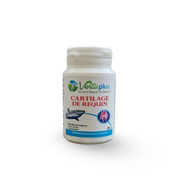 VERTU PLUS CARTILAGE DE REQUIN 90 GÉLULES, un complément naturel pour soutenir santé articulaire et bien-être général, disponible chez VERTU PLUS.