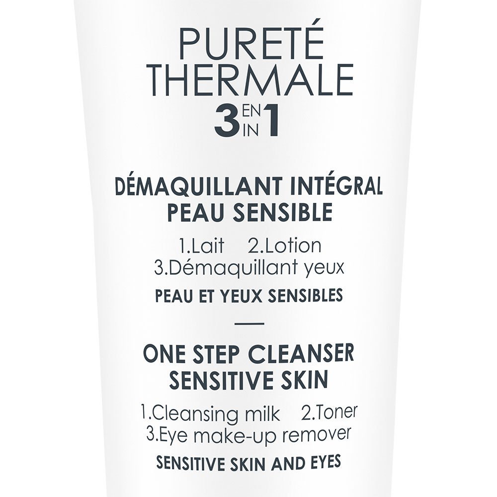 PURETE THERMALE Démaquillant Intégral 3en1 offre à la fois un soin nourrissant et doux, une lotion rafraîchissante et un démaquillant délicat pour les yeux.