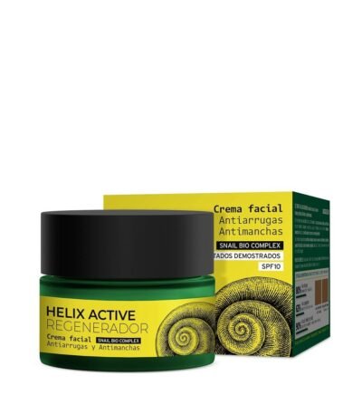 La crème visage régénérante Helix Active, à l'efficacité prouvée par des études, réduit la profondeur des rides et atténue visiblement les taches. Son complexe protéique Snail Bio Complex est riche en acide glycolique, allantoïne, protéines, élastine et collagène et agit efficacement pour hydrater, adoucir et réduire les imperfections de la peau.