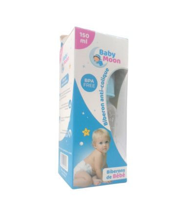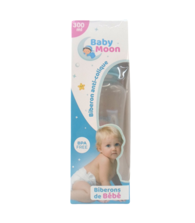 Le Baby Moon Biberon Anti-Colique 300ml assure une alimentation saine et confortable, idéal pour réduire les coliques des nourrissons avec qualité et sécurité garanties.