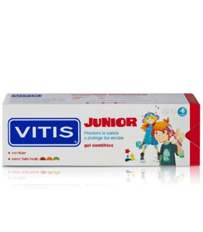 Le Gel dentaire Vitis Junior a été spécialement conçu pour l’hygiène bucco-dentaire optimale des enfants à partir de 6 ans, quand commence l’apparition des dents définitives.